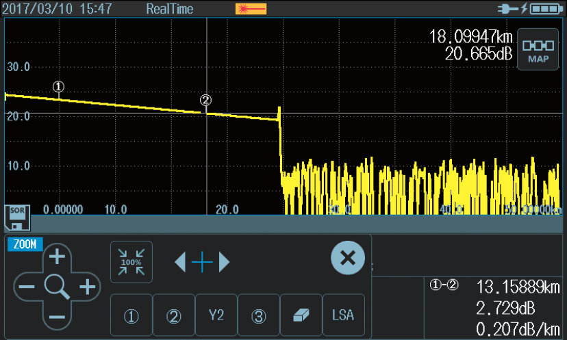 AQ1000的数据文件可使用OTDR数据传输工具传输到智能手机或平板电脑,或使用OTDR Remote Controller软件传输到计算机。