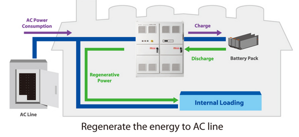 Chroma 17030系统是专门为高功率二次电池组 测试而开发的高精密充放电设备,采用可回收能 源设计架构,将电池组放电产生的电能回收再利用,解决放电时能量虚耗的问题;鉴于能源议题,绿能产品在生产时应该使用符合环保观念的 生产方式,传统的设备以热能的方式处理,放电 能量虚耗成热能,又需要更多的空调设施,让设备降温。除了为使用者带来庞大的经济效应,也解决作业空间热处理不易的问题,并符合环保需求。