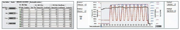 使用者可藉由此图形化虚拟仪控面板软体内的I-V曲线编辑功能:Table模式& SAS模式去编辑欲模拟的I-V曲线后下载至62000H-S系列单机记忆体(1-100)内,当使用者编辑完成太阳电池阵列I-V曲线后,可呼叫欲测试的I-V曲线于此画面后,验证光伏逆变器的最大功率点追踪机制(MPPT)效能,并即时将追踪过程显示于此画面。另外此功能可让使用者设定MPPT Efficiency测试维持时间,建议每一点测试时间为60s-600s为最佳MPPT EFF%效能分析。